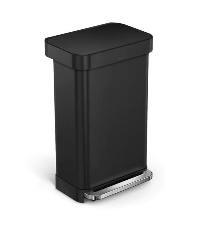 Sterkbyggt fótstig opnar/lokar hljóðlegaHólf í tunnu fyrir auka pokaNotar M ruslapoka frá SimplehumanMálin: 33.8 x 40.5 x 65.5 cm (91.5cm opin)
