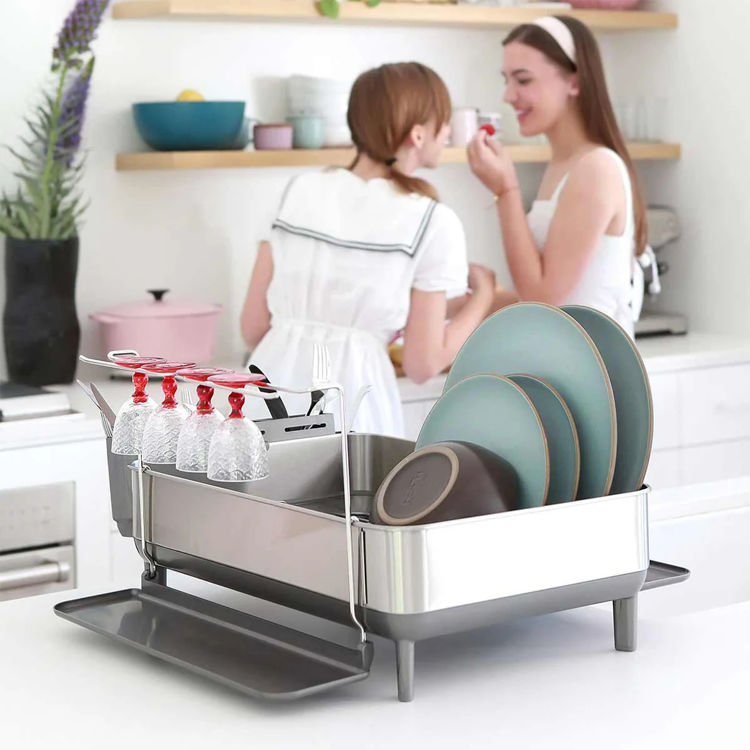 Uppþvottagrind úr ryðfríu stáli.Snúningstútur snýst 360 gráður í hvaða átt sem er, tæmir þá vatn beint í vaskinnGrind með sílikoni heldur diskunum þétt án þess að rispa. Vínglasahaldarinn tekur allt að 4 vínglös - jafnvel sérstaklega stóru Bordeaux-glösin. Málin: 56,6 x 51,4 x 29,2cm